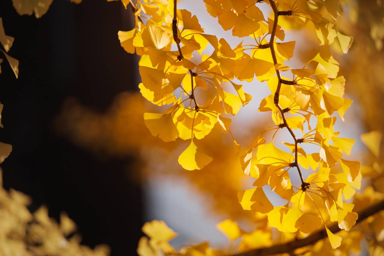 Au printemps, le feuillage arbore une teinte vert tendre qui s’intensifie durant l’été. Mais c’est à l’automne que le ginkgo révèle toute sa splendeur : ses feuilles se transforment en un jaune doré éblouissant, créant un contraste saisissant avec le ciel automnal.