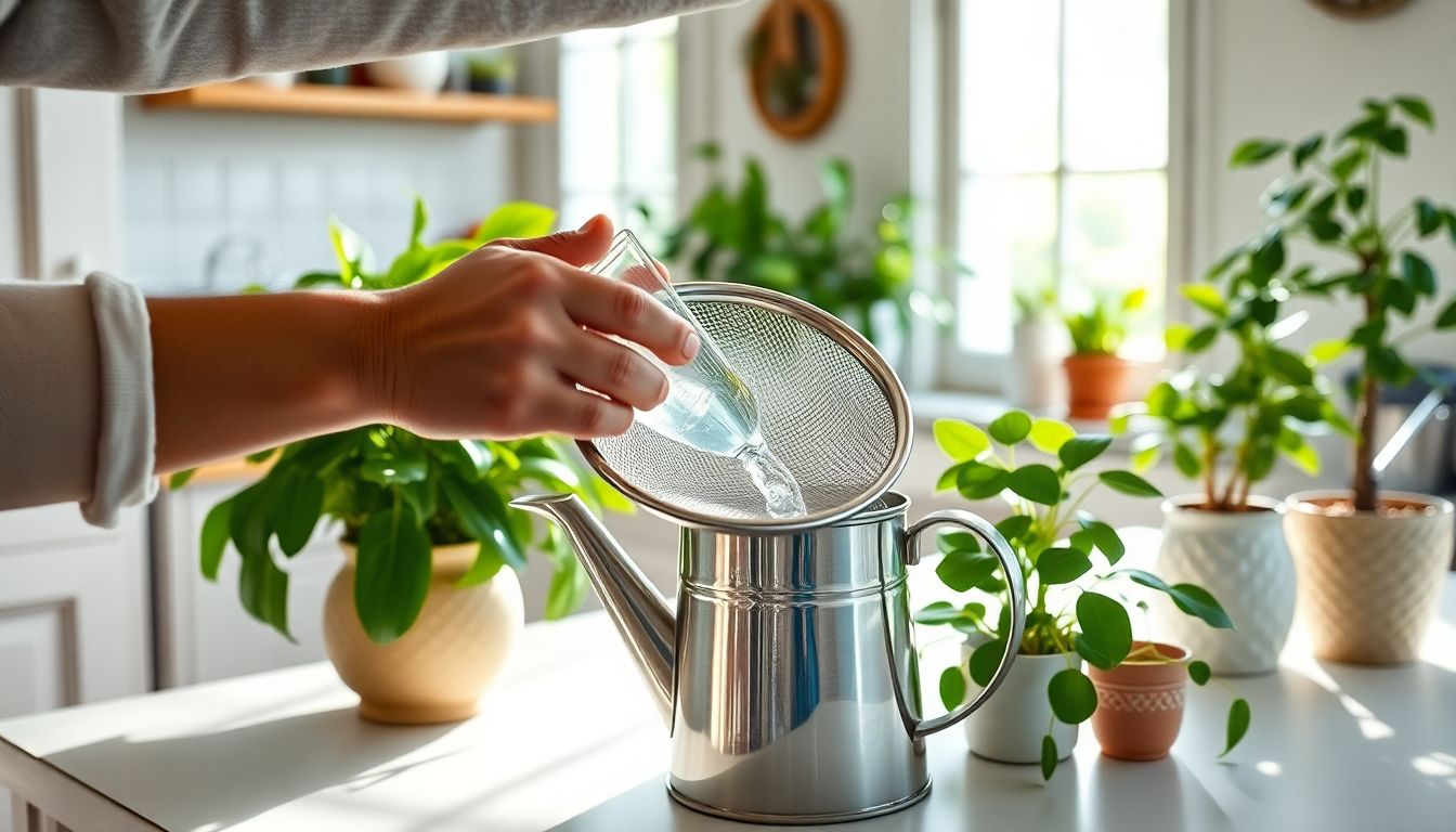 J’utilise personnellement un tamis à maille fine en inox, que je rince soigneusement avant chaque utilisation. Cette précaution garantit une eau parfaitement propre pour mes plantes. Certains jardiniers ajoutent même une étape de filtration supplémentaire avec un filtre à café pour obtenir une eau d’une pureté maximale.